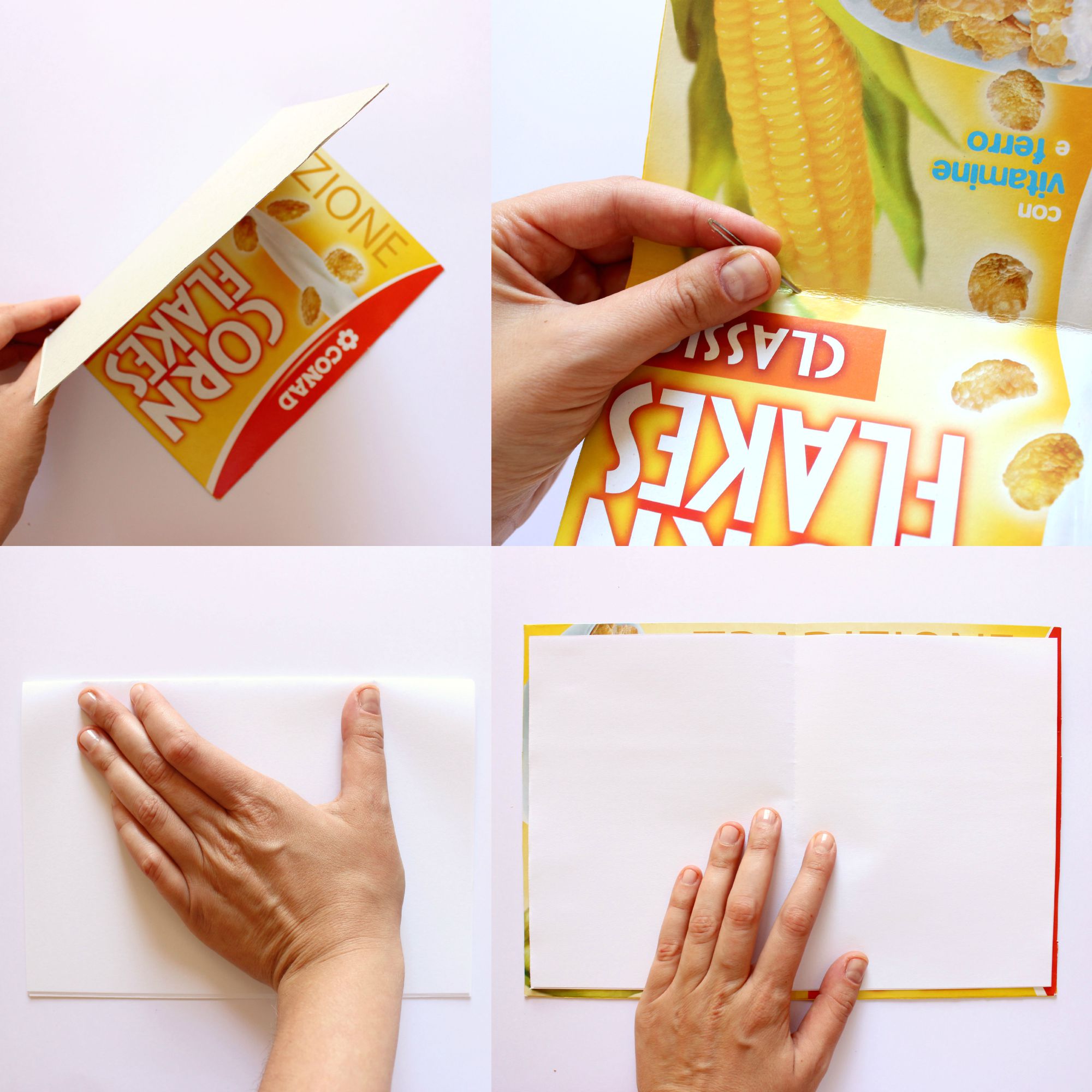 E voilà! Il vostro notes è pronto! E il bello è che aprendolo resta visibile la scatola di cereali 🙂