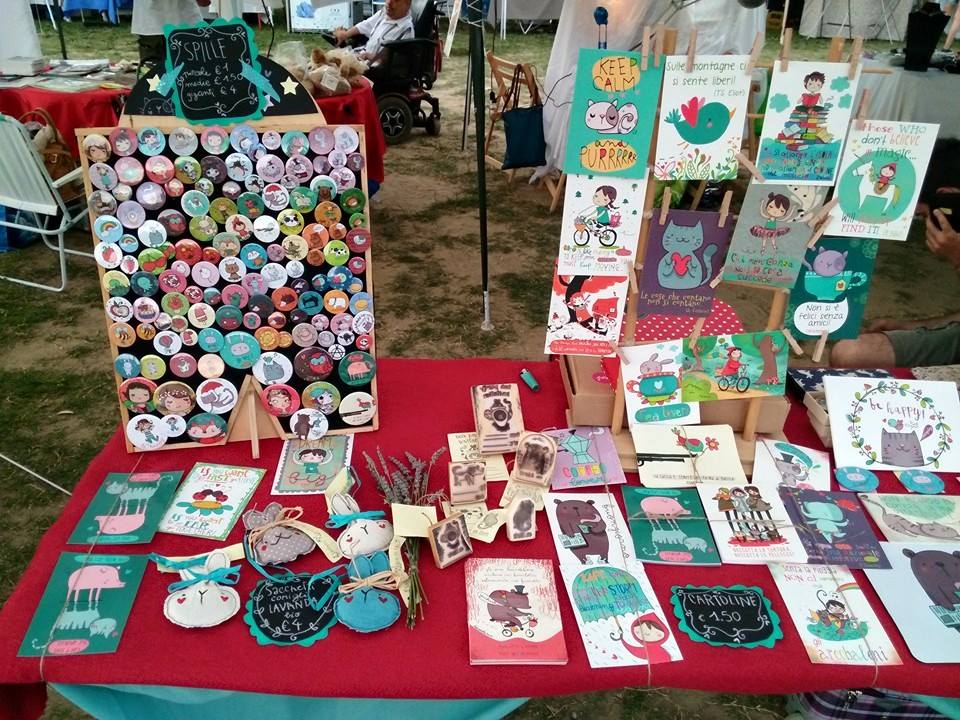 Mi sento più illustratrice che crafter, perché quasi tutti gli oggetti che creo hanno come caratteristica principale e più peculiare l’illustrazione più che il metodo di creazione. Gli oggetti che creo sono spille, calamite, portachiavi, cartoline…tutte cose che hanno una produzione abbastanza meccanica, mentre nelle illustrazioni che hanno al loro interno, lì c’è tutta la mia creatività! Accanto a queste produzioni che sono quelle principali ci sono poi altre che sono più “handmade”, come le tovagliette di stoffa o i sacchetti di lavanda, lì sfodero di più il mio spirito crafter.