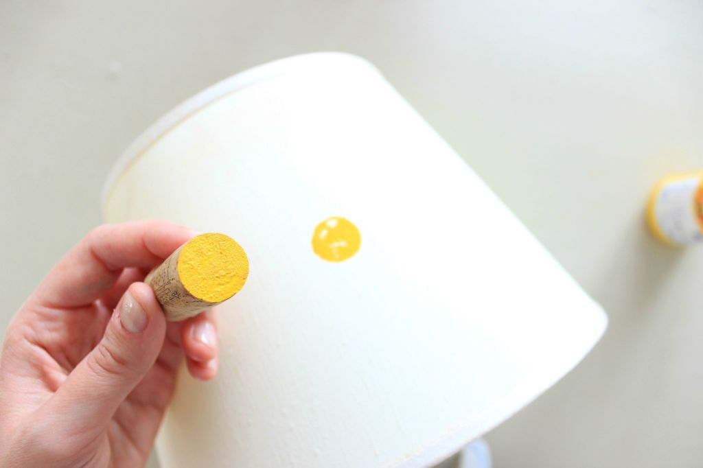Poggiate il tappo sul paralume, schiacciate e stampate il centro del fiore.