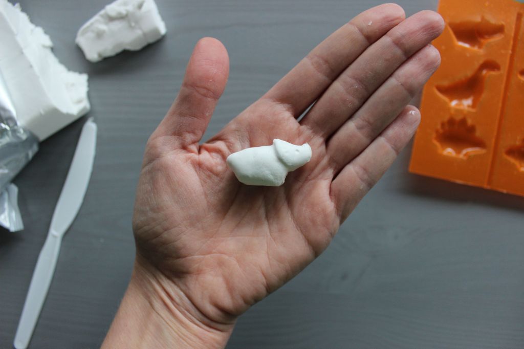 Pronti? Iniziamo! Per iniziare avrete bisogno di uno stampino per dinosauri e della pasta modellabile che asciuga all’aria.