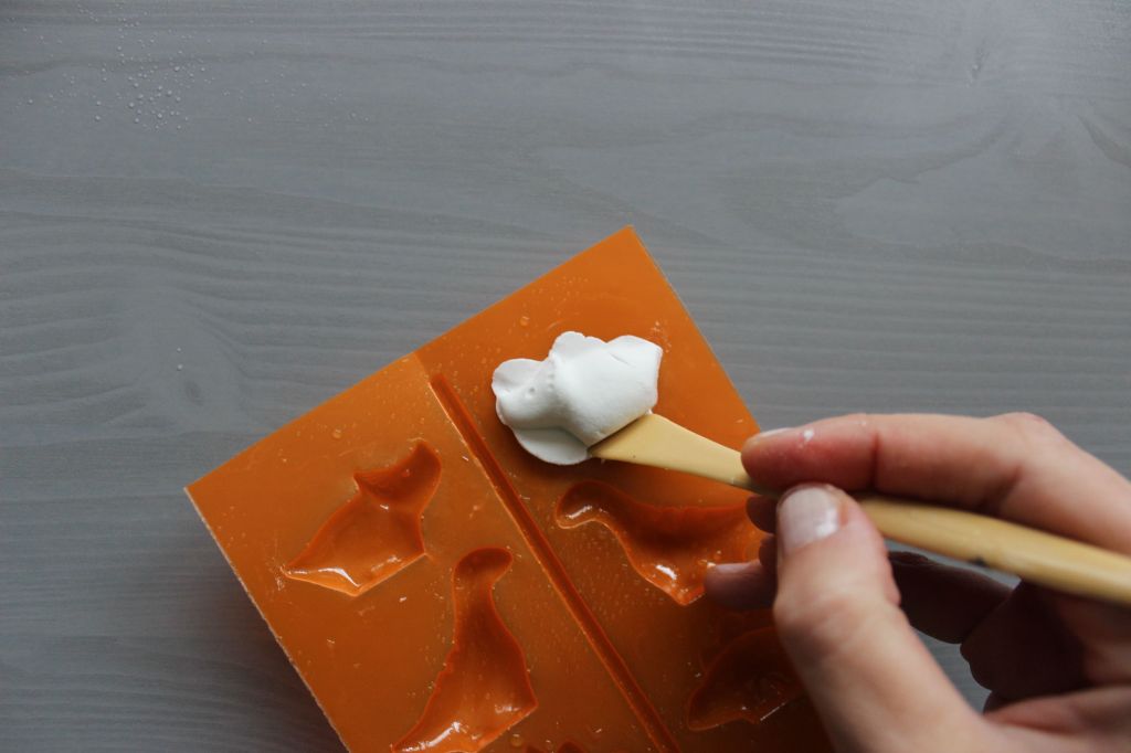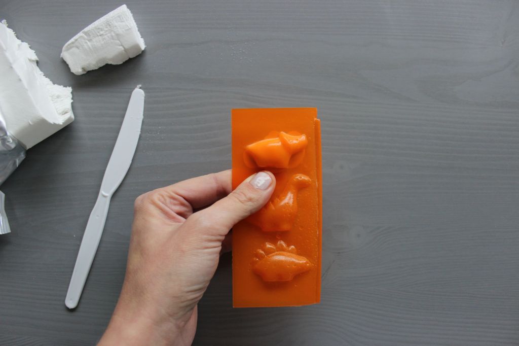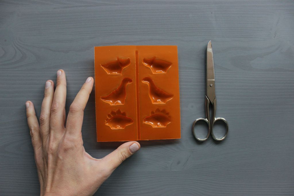 Se avete lo stampo per dinosauri uguale al mio dovrete innanzitutto tagliare la parte superiore.