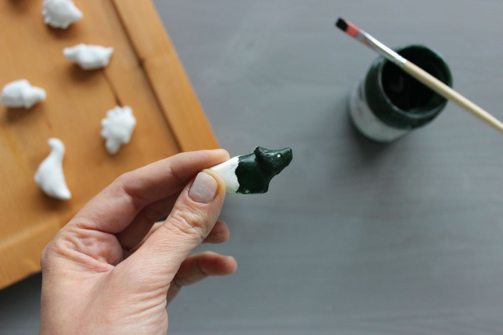 Una volta asciutti dipingeteli con colori acrilici. Se non li avete utilizzate le tempere, ma in seguito stendete uno strato di colla vinilica per renderli lucidi e più resistenti.